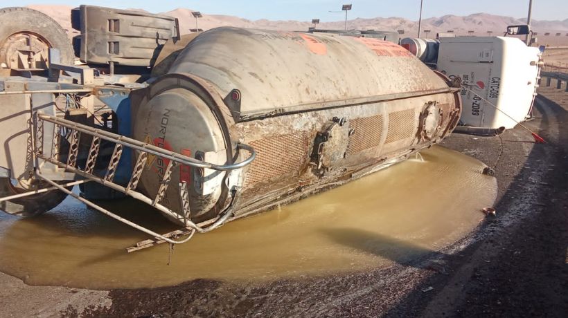 (Imagen del accidente del volcamiento producido ayer/ Carabineros Antofagasta)