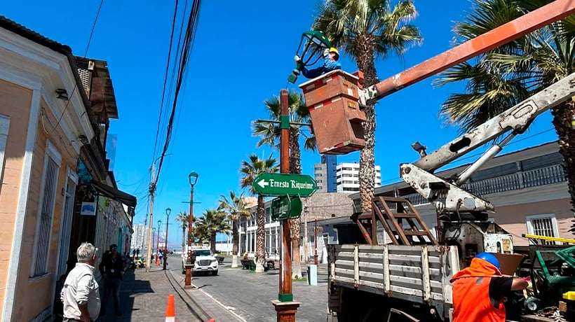 Inician recambio de luminaria pública en el Paseo Peatonal Baquedano de Iquique