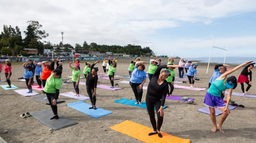 Personas mayores despidieron el verano con yoga en playa Pelluco