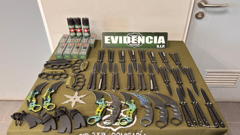 El hombre fue capturado mientras ofrecía navajas, armas arrojadizas, gas pimienta y manoplas en el parque Brasil de la comuna limachina.