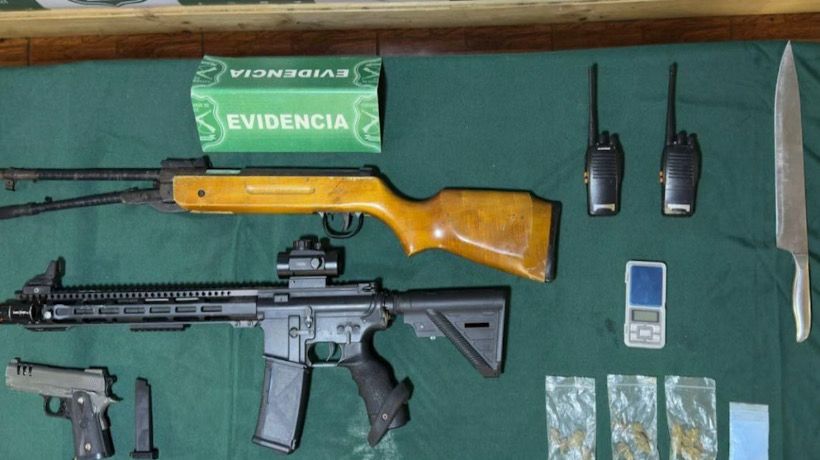 Un procedimiento iniciado por un control preventivo permitió desarticular un grupo que mantenía armamento, drogas y elementos de uso institucional en un domicilio de la comuna.