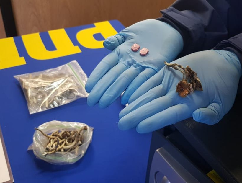 La PDI encontró cerca de 40 gramos de hongos Psilocybe, altamente alucinógenos y 36 comprimidos de éxtasis en la casa de una de ellas.