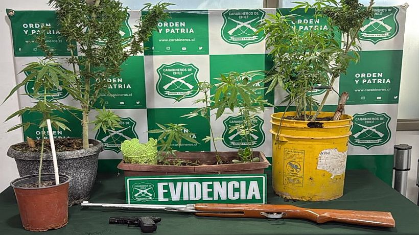Los individuos amenazaron de muerte a la víctima, durante el procedimiento Carabineros incautó un rifle, una pistola y 16 plantas de cannabis sativa.