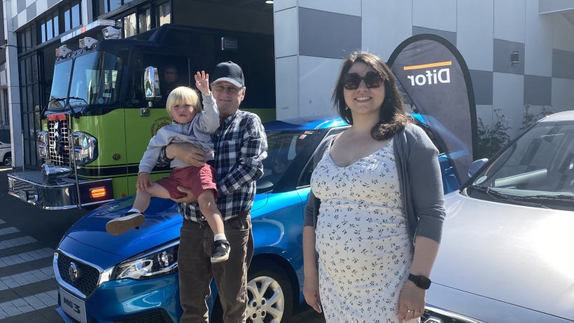 Joven enfermera y menor de 3 años se llevan los automóviles de la rifa de Bomberos