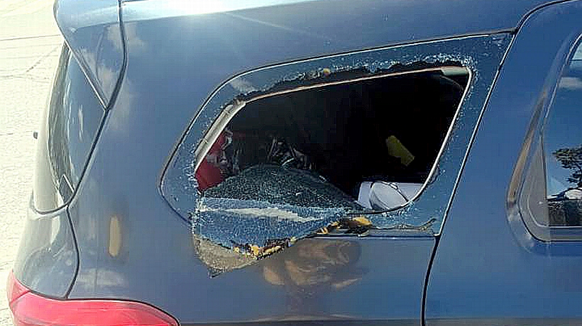 Así quedó el vidrio del vehículo con patente argentina. (Cedida)