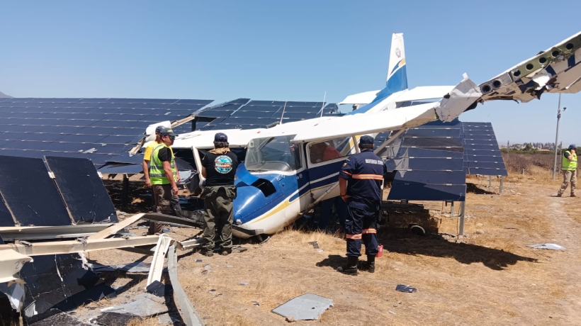 La aeronave perdió el control en el aeródromo local y cayó sobre paneles solares colindantes a la pista. Bomberos y SAMU trabajaron en la emergencia, mientras la DGAC quedó a cargo de la investigación.