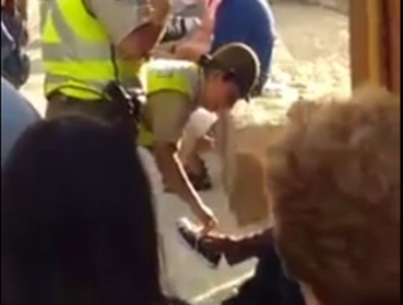 Mediante un video subido a redes sociales, se puede observar como los funcionarios policiales notaron que el individuo se encontraba completamente descalzo.