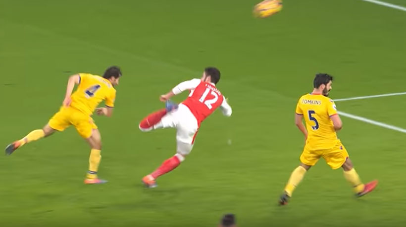 En el duelo entre Arsenal y Crystal Palace, el francés Olivier Giroud anotó de taco al ángulo.