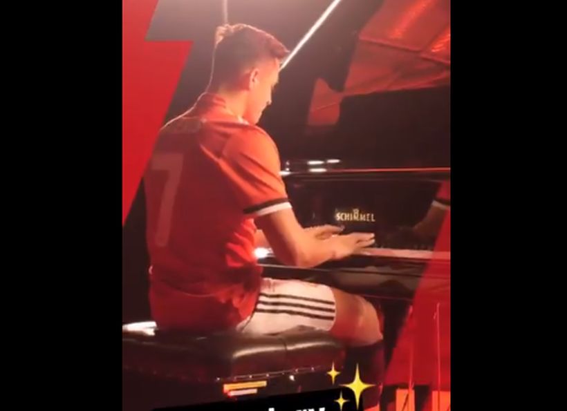 El club publicó imágenes de los momentos previos a la grabación del anuncio, donde aparece poniéndose la camiseta del equipo inglés por primera vez y practicando piano.