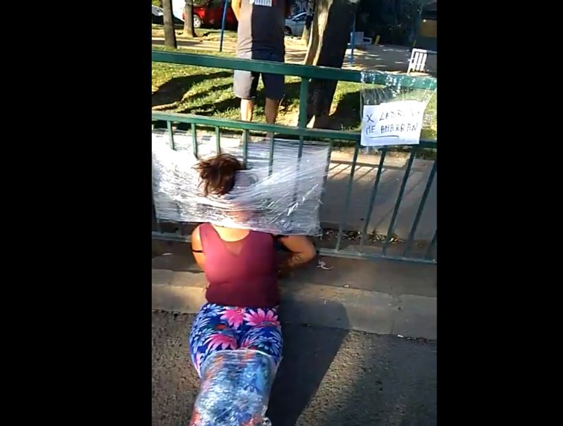 [VIDEO] Detención ciudadana: amarraron de pies y manos y cubrieron el rostro con film transparente a mujer acusada de intentar robar un auto