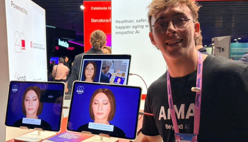 La tecnología desarrollada por la compañía Aima presente en el Mobile World Congress 2026 posee más de 80 idiomas. Puede hablar y funciona con suscripción.