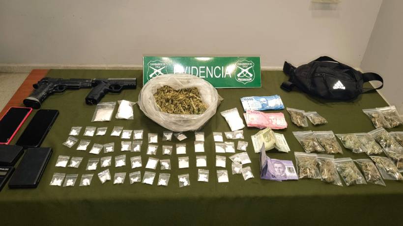 Tras seguirlo hasta su domicilio, carabineros incautó armas, sustancias ilícitas dosificadas y celulares.
