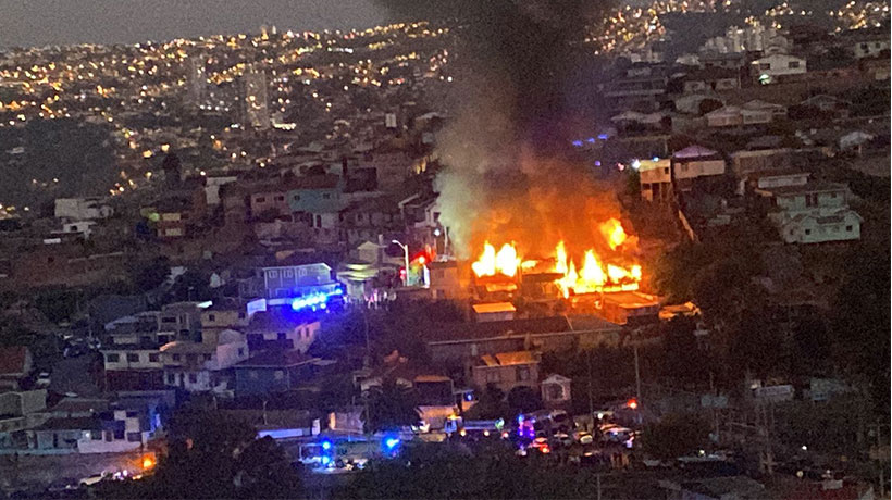Valparaíso: violento incendio consumió cinco viviendas en el Cerro Mariposa