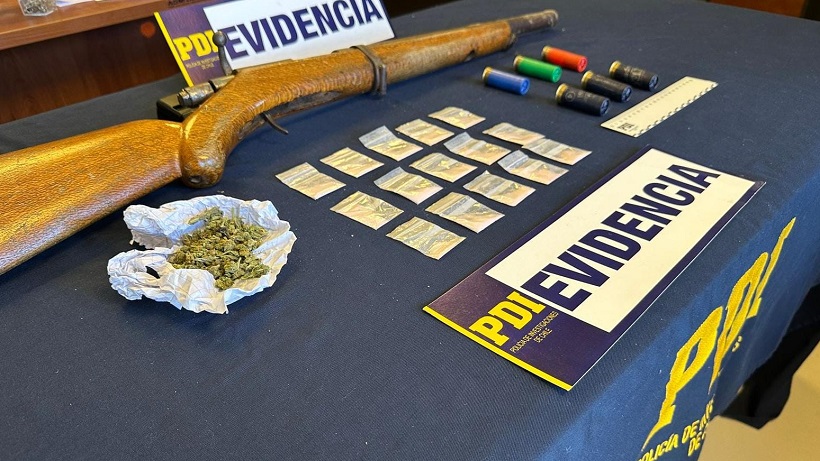 En el allanamiento policial se incautó un total de 60 dosis de cannabis sativa y ketamina, conocida como tussi, además de una escopeta y munición.